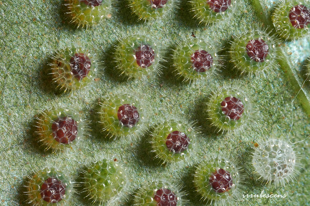 大多數蝴蝶一但進入成蝶階段,往往就要迅速地進行交配及產卵的工作,但也有部分蝴蝶有者截然不同的生活史策略,翠蛺蝶屬及瑙蛺蝶屬有著頗為近似的生活史過程,他們早在六月份就陸續羽化,在臺灣的低、中海拔山區翩翩飛舞,但一直要等到秋季才開始進行繁衍下一代的任務,此時體型較為壯碩的雌蝶會開始尋找合適的寄主植物,並以聚產的方式把卵整齊的產在葉背,卵表面有著非常細緻的突起及凹刻,模樣彷彿放大版的「病毒」一般,十分特殊而美麗,經過數日的成長並孵化後,群聚在一塊的初齡幼蟲會啃食老熟的寄主葉片,並在後續寒冷的冬季,以不休眠的模式持續進食與成長。