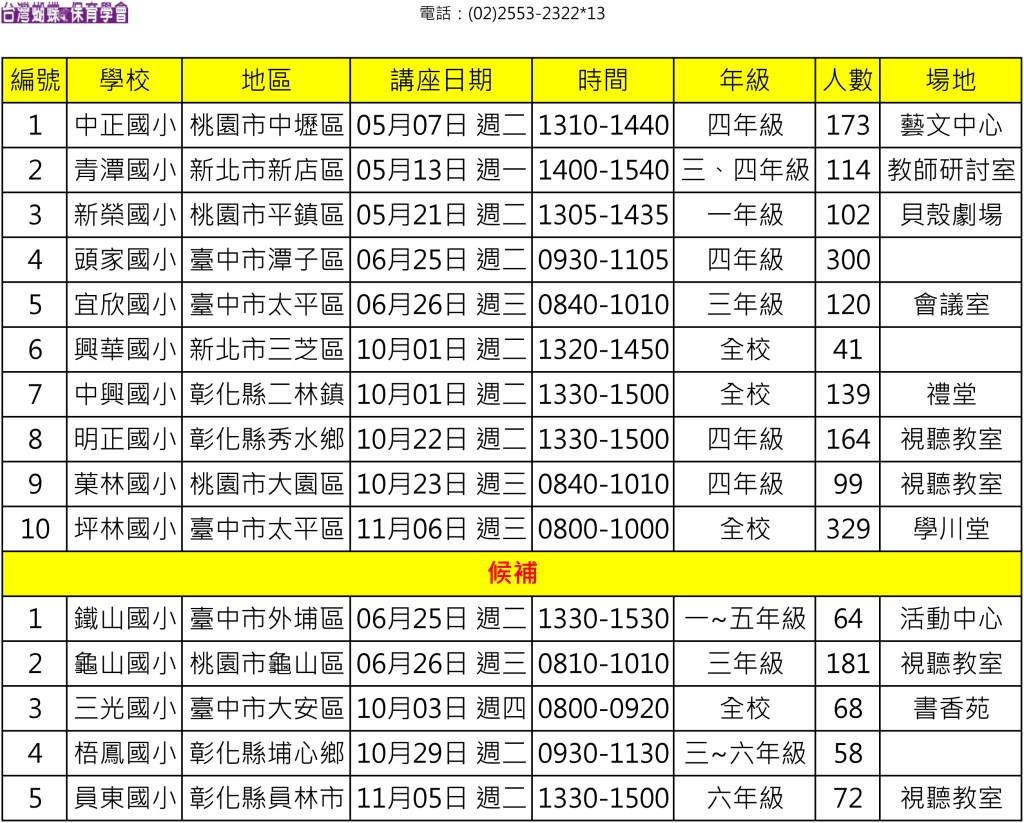 ●本講座優先開放給未申請的學校申請,已申請過的學校,列於候補。