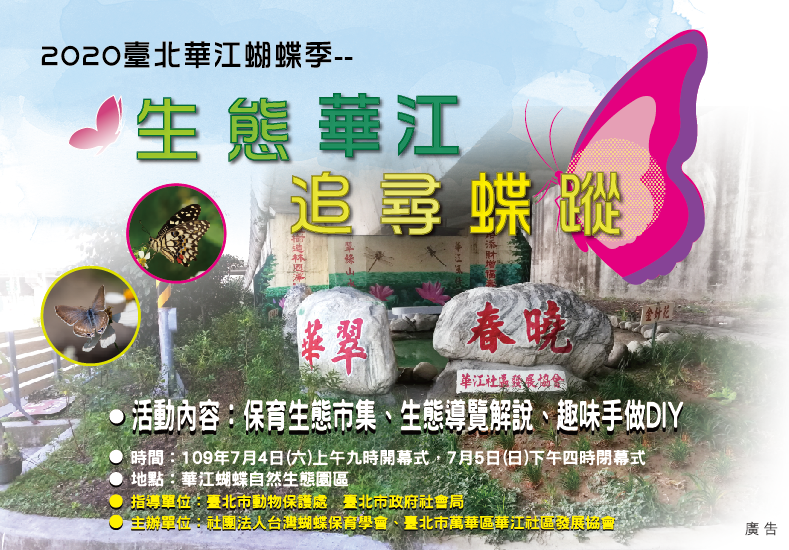 主辦單位:社團法人臺灣蝴蝶保育學會、臺北市萬華區華江社區發展協會