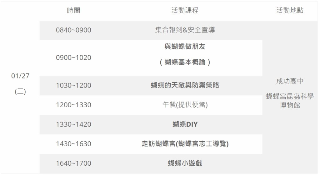 | 五、活動地點: | 臺北市立成功高級中學蝴蝶宮昆蟲科學博物館 |