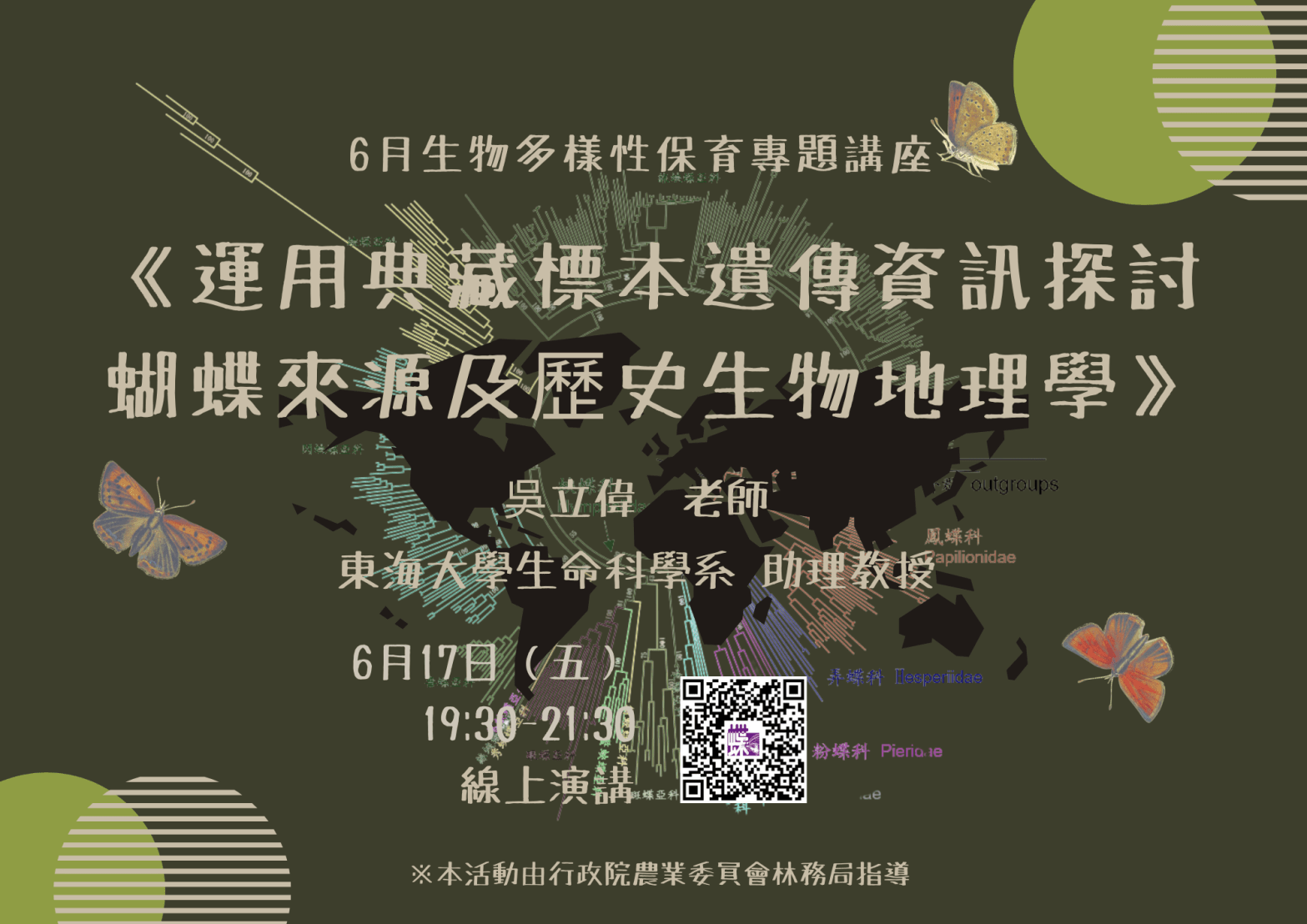 本次的演講即是以蝴蝶為材料,闡明如何利用這類的資訊,探討蝴蝶起源的案例。
