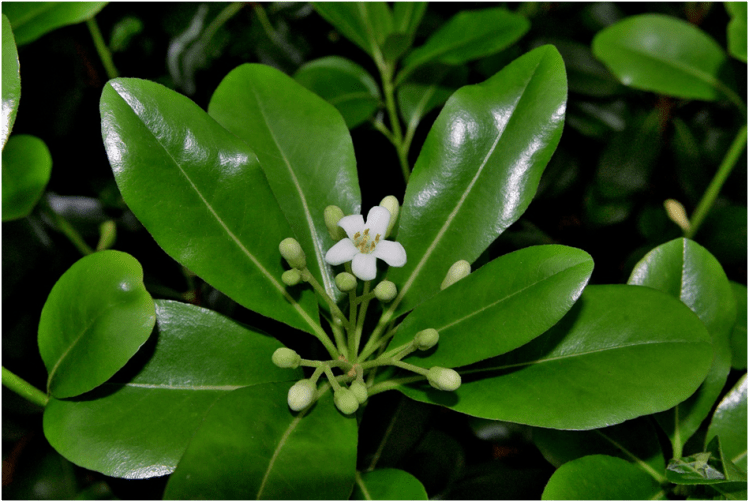 2.黃白色的小花有著濃郁的香味,因而有「七里香」的美名,為著名的香花植物。