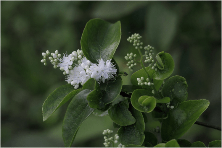 3. 圓錐花序頂生,小花數目多且密集;花冠白色,雄蕊多數、細長。花期:3~4月。