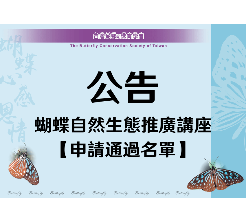 【申請通過公告】2023蝴蝶自然生態推廣講座 分類:台灣蝴蝶保育學會taiwanbutterfly2023 年 6 月 2 日2025 年 2 月 17 日發表於講座課程,最新消息標籤:講座課程,最新消息,校園推廣講座 注意事項: ●已申請通過場次若因故取消,將依序由候補學校遞補。●本講座優先開放給未申請的學校申請,若前三年有已申請過之學校,將會列於候補。●台灣蝴蝶保育學會為關心蝴蝶生態保育之民間團體,會務之運作發展及推動完全憑藉熱心之社會大眾自發性義務提供勞務及捐款,若您認同本會理念,歡迎您以保育捐款、加入會員、參與志工等實質行動參與,蝶會感謝您的支持~如有疑問歡迎來電蝶會洽詢:02-25532322*13 林務局(pdf檔下載) 臺北市動保處(pdf檔下載) 教育部-偏鄉/非山非市(pdf檔下載) 分享此文: 按一下即可分享至 X(在新視窗中開啟) X 按一下以分享至 Facebook(在新視窗中開啟) Facebook 喜歡 正在載入... 相關