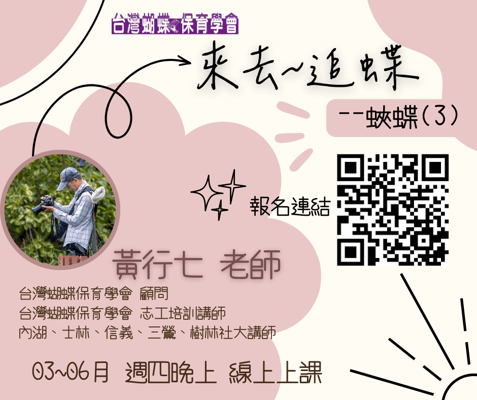 全世界蛺蝶科成員超過6000種且廣泛呈世界分布,成蝶型態多樣,以往分為許多科,如斑蝶科 、蛇目蝶科、環紋蝶科、長鬚蝶科、貓頭鷹蝶科、摩爾浮蝶科、毒蝶科等。然而,由分子遺傳資訊或型態分析等所得的親緣關係顯示這些科與過去的狹義蛺蝶科全部為一個單系群。如今因疫情蝶會開設線上教學課程,經過前幾期〈鳳蝶〉、〈粉蝶〉、〈灰蝶〉的一路陪伴後,讓我們繼續跟著關注蝴蝶生態40餘年的黃行七老師進入〈蛺蝶〉的世界,一起與蝴蝶作朋友,走在蝴蝶最新資訊中~!