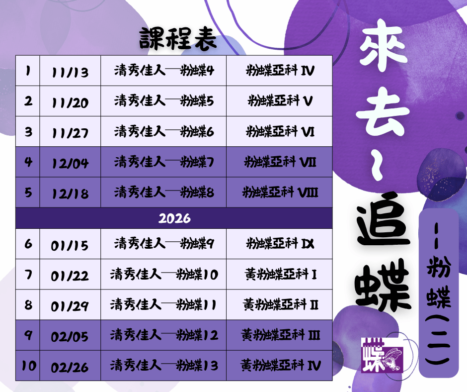 【上課日期】2025年11月~2026年02月 ※非每週四上課,請注意課表上課日期唷!